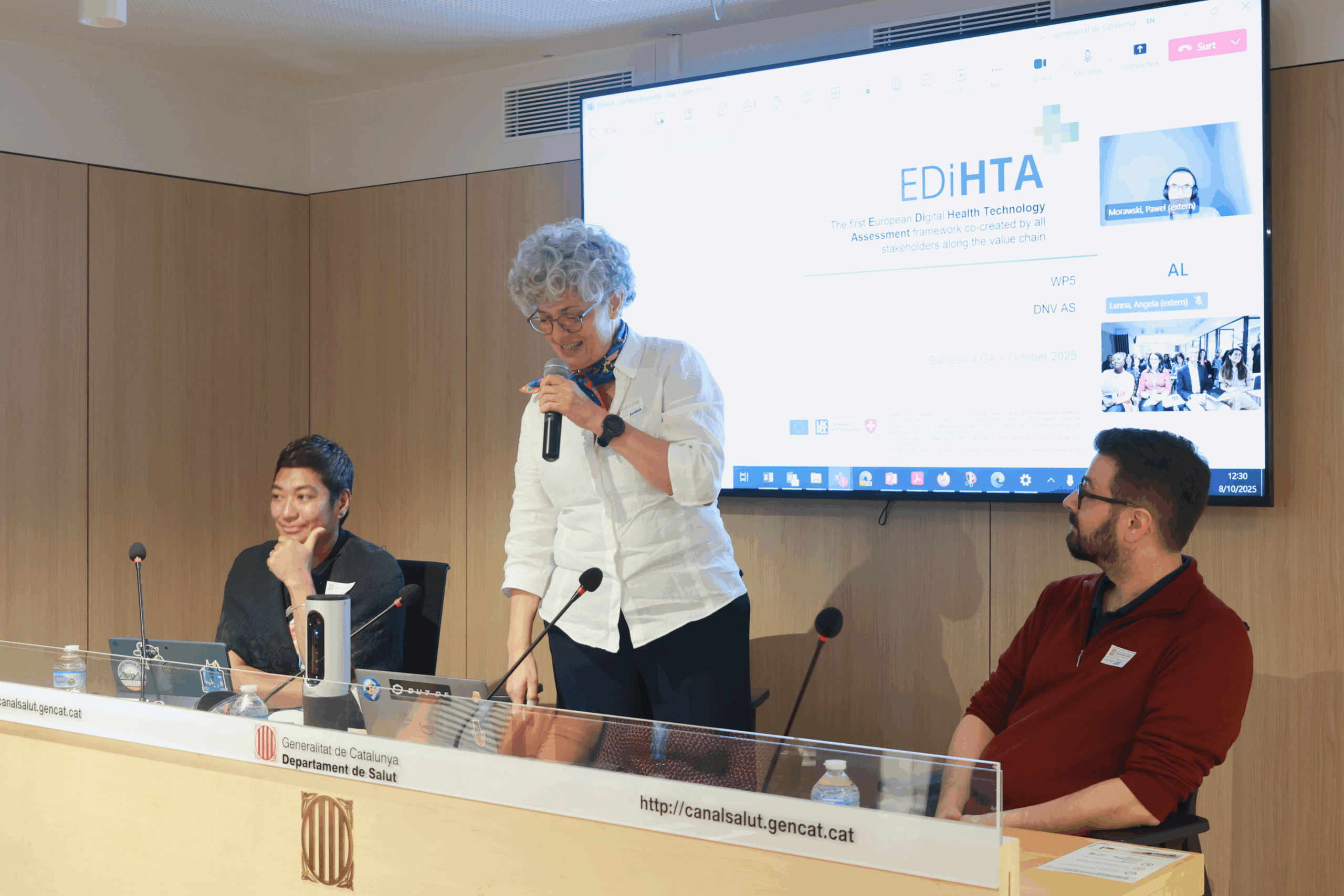 Set in the modernist surroundings of AQuAS headquarters, the meeting opened with a warm welcome from the host team and remarks from the coordination partners at Università Cattolica del Sacro Cuore (UCSC). The first sessions dived into the evolving structure of the EDiHTA framework — with presentations from AQuAS, Hospital Clínic de Barcelona (HCB/FCRB), and DNV outlining advances in evidence requirements, platform architecture and digitalisation.